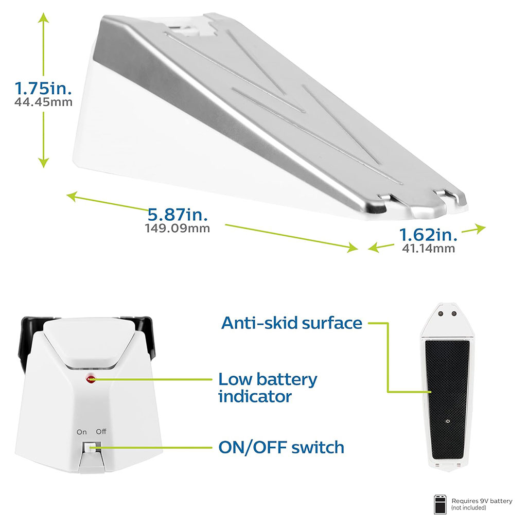 🚪 تصميم مانع للأبواب سهل التركيب :ضع الجهاز ببساطة أسفل أي باب مغلق.عند محاولة فتح الباب، تضغط القاعدة على لوحة الاستشعار ليصدر الإنذار فوراً.لا يحتاج إلى تثبيت أو أدوات – جاهز للاستخدام فوراً.⚙️ مواصفات ذكية ومريحة :🔘 زر تشغيل/إيقاف لتفادي الإنذارات الخاطئة.🔋 يعمل ببطارية 9 فولت واحدة (غير مشمولة).💡 مؤشر انخفاض البطارية للتنبيه عند الحاجة إلى استبدالها.🏡 راحة بال تامة :صُمم هذا الجهاز ليمنحك الأمان أينما كنت — في المنزل، الفندق، المكتب أو أثناء السفر.