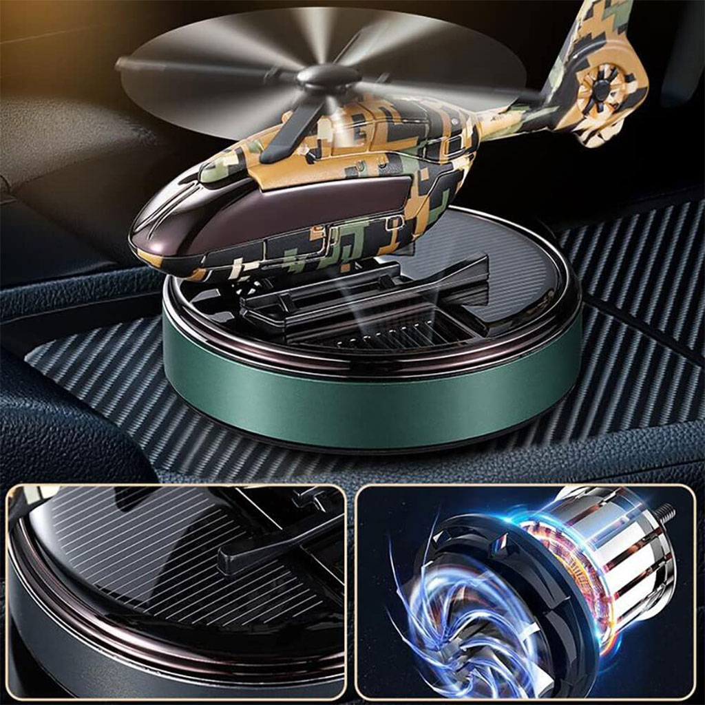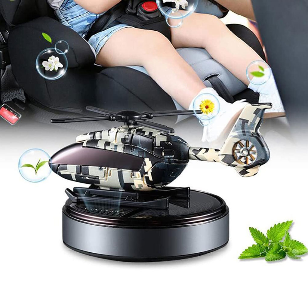 🚁 معطر سيارة شمسي بتصميم مروحية استمتع برحلة منعشة مع معطر المروحية الشمسي بتصميم مرح وفريد، مع فتحات واسعة لنشر العطر بكفاءة في أجواء السيارة.
