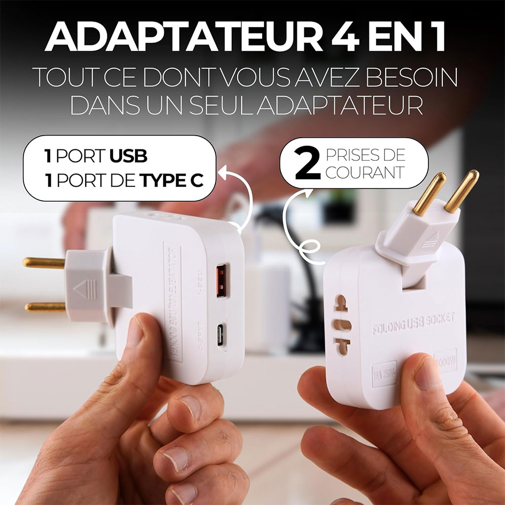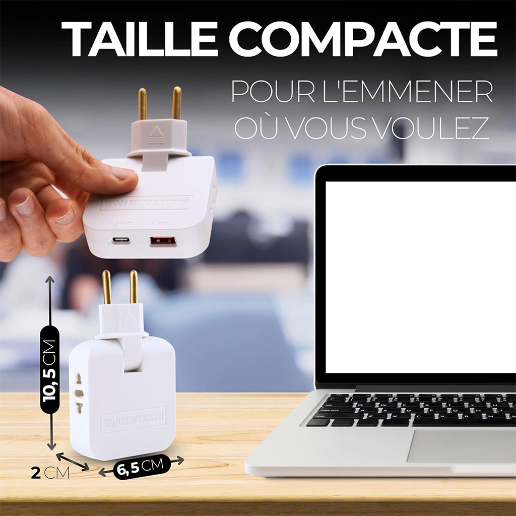 ✅ وظائف متعددة: يحتوي على منفذ USB، منفذ Type-C، ومقبسين كهربائيين.