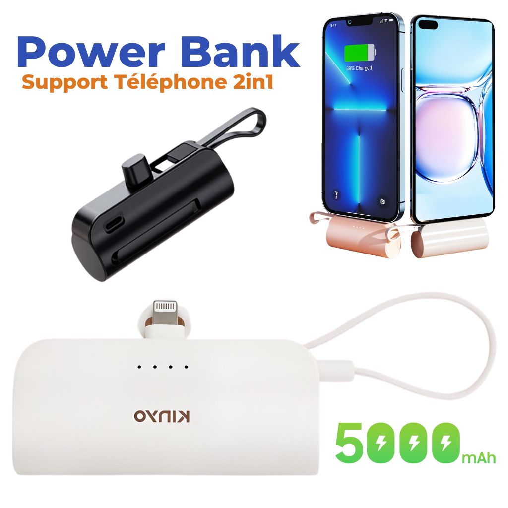 PowerBank 5000mAh et Support Telephone 2en1 – باور بانك