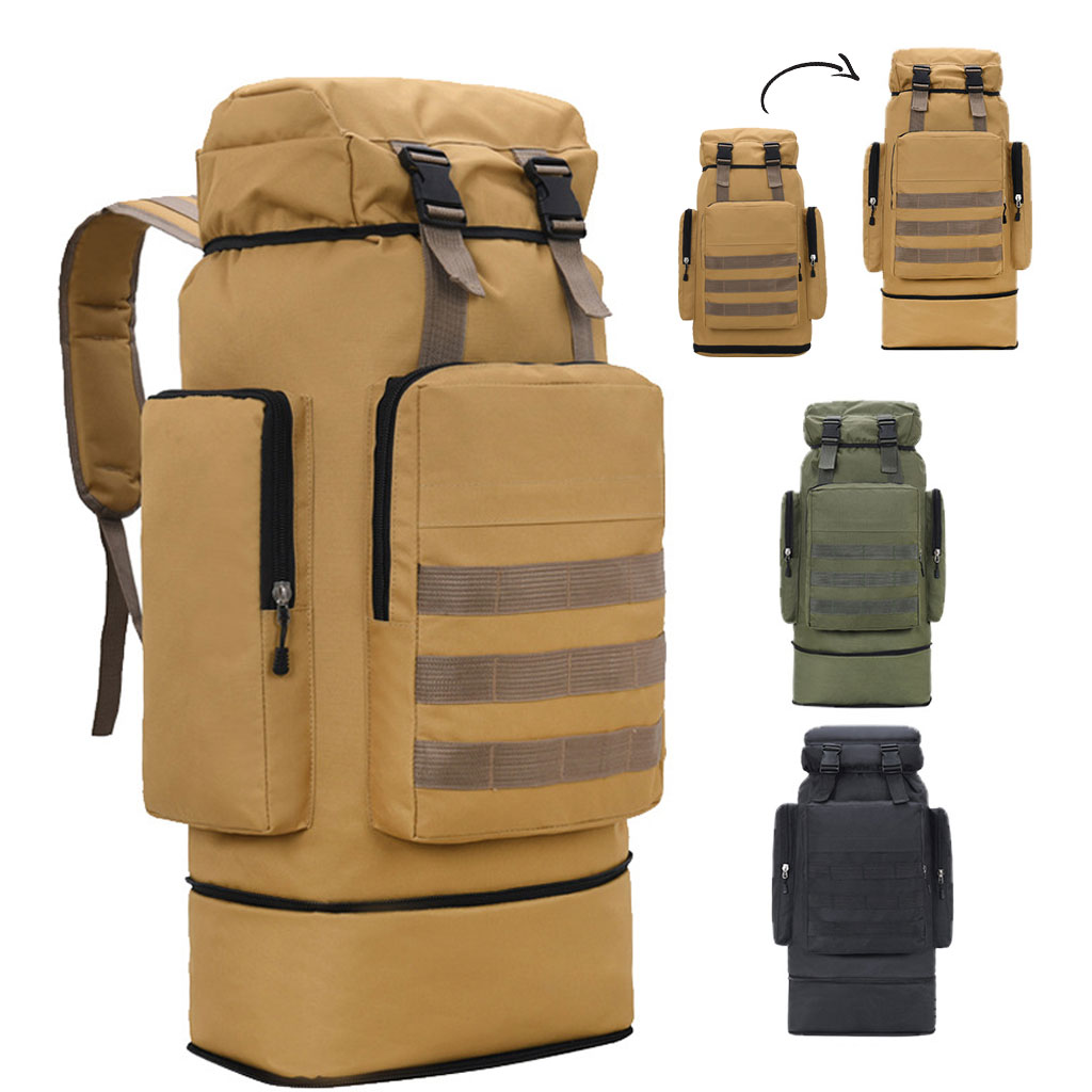 Résistant à l’eau : ce sac à dos de camping à cadre est fabriqué en tissu Oxford avec revêtement résistant à l’eau, offrant une durabilité durable contre les activités quotidiennes, un excellent sac à dos de randonnée en plein air.Grande capacité : la taille du sac à dos de camping est de 73 (+14) x 35 x 22 cm, espace spacieux et conception à plusieurs compartiments, le sac à dos d’une capacité de 70 L pour homme peut répondre à vos besoins pour une semaine de voyage.Ergonomique et confortable : les bretelles rembourrées en éponge épaisses et élargies, la ceinture abdominale aident à soulager votre fardeau. La maille respirante rembourrée de mousse à cellules ouvertes durable sur le panneau arrière ergonomique offre une meilleure ventilation pour dissiper la chaleur et vous donner une sensation plus confortable.Pas de cadre interne : ce sac à dos de randonnée léger et confortable est spécialement conçu pour les amateurs de plein air ; les bretelles en maille respirante avec un rembourrage en éponge abondant aident à soulager le stress de votre épaule ; les bretelles de type S élargies et épaisses et le support dorsal hautement élastique et respirant pour une meilleure ventilation et un soulagement du fardeau, vous offrent une expérience plus confortable.