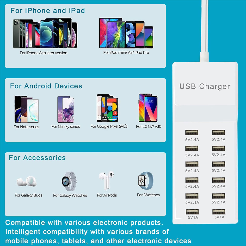 مزودة بـ 12 منفذ USB مستقل، كل منفذ له دائرة شحن خاصة به لضمان الأمان الكامل.